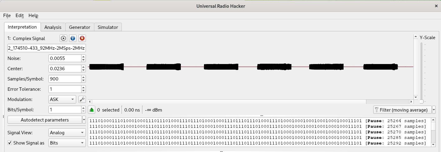 Let’s have a look at the automatic demodulation executed by Universal Radio Hacker, in the “Interpretation” tab:
