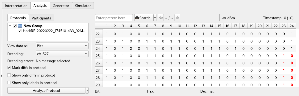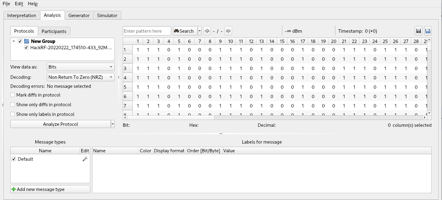 Now, let’s deal with the encoding. This process with most algorithms encodes one bit of information into multiple bits, in order to make the resulting signal more resilient to transmission and timing errors. Universal Radio Hacker offers a tool to work on encoding in the “Analysis” tab: