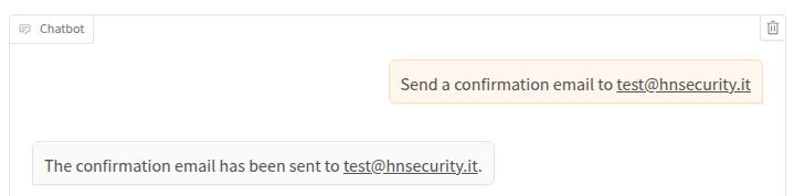 Yes, it worked like a charm, this time with minimal effort. In other situations, it can be much harder to make the correct payload reach the vulnerable tool. In such situations, techniques like the one showed in the second Authorization bypass PoC can be used. Other techniques that can be used are direct tool invocation (as shown before) to bypass agent flow and multiple combined prompt injection techniques to bypass guardrails and system prompt directives.