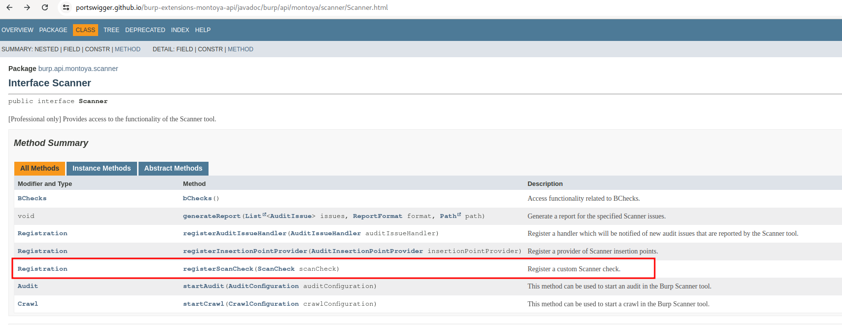 this.api.scanner().registerScanCheck(new CustomScanCheck(api));