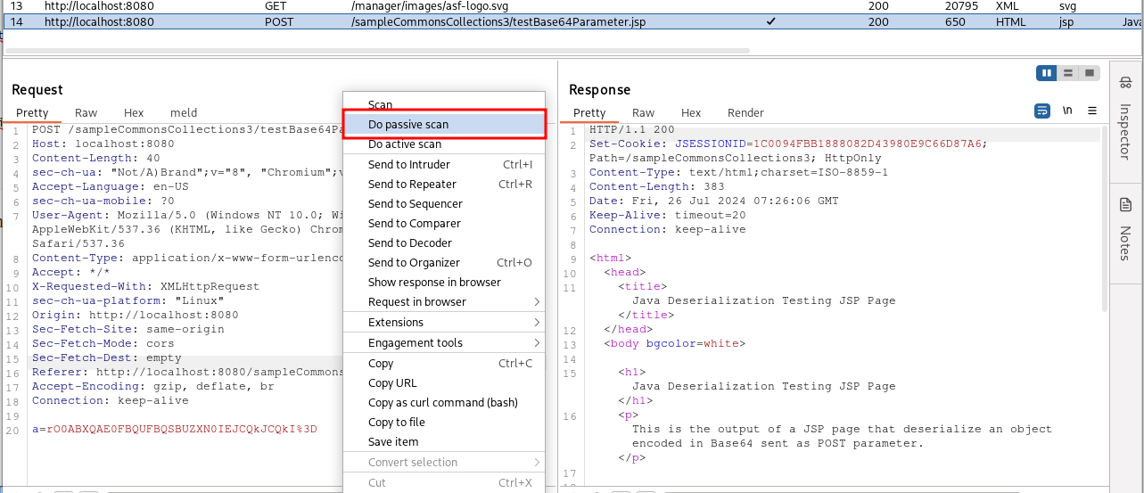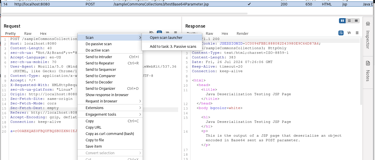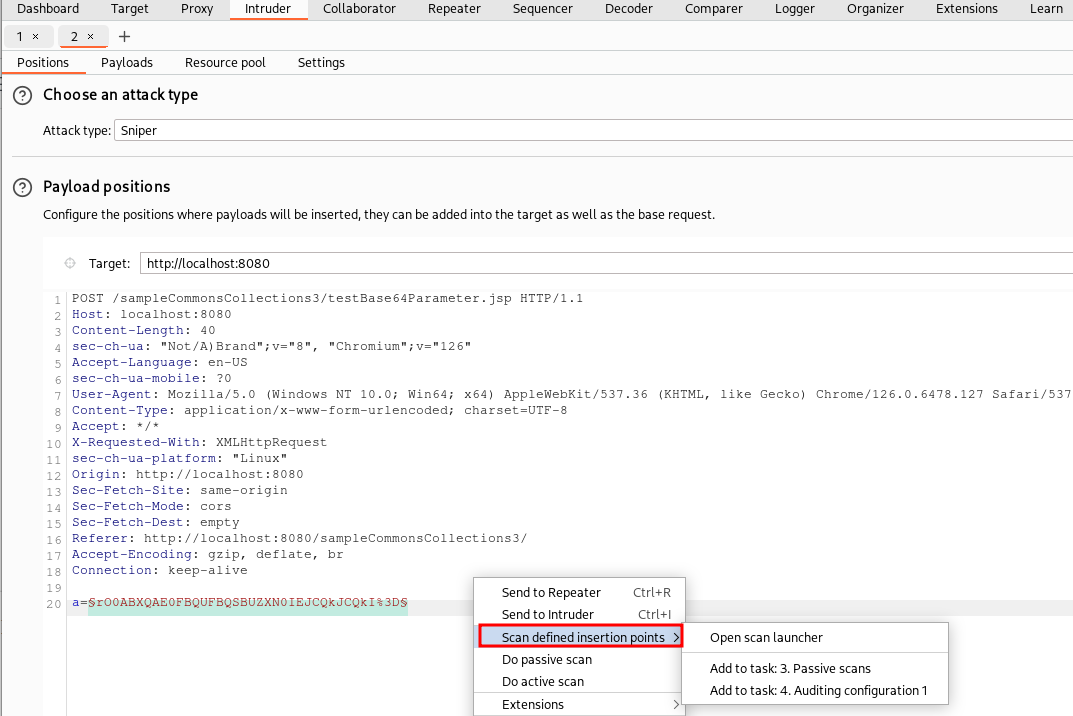 Let’s start with the activeAudit method. Our goal is to identify a serialization issue in the backend with an active probe (so, we can use our payloads to identify the issues). As said before, we will try to identify only serialization issues in the Apache Commons Collections 3 library, in order to simplify our demo plugin.