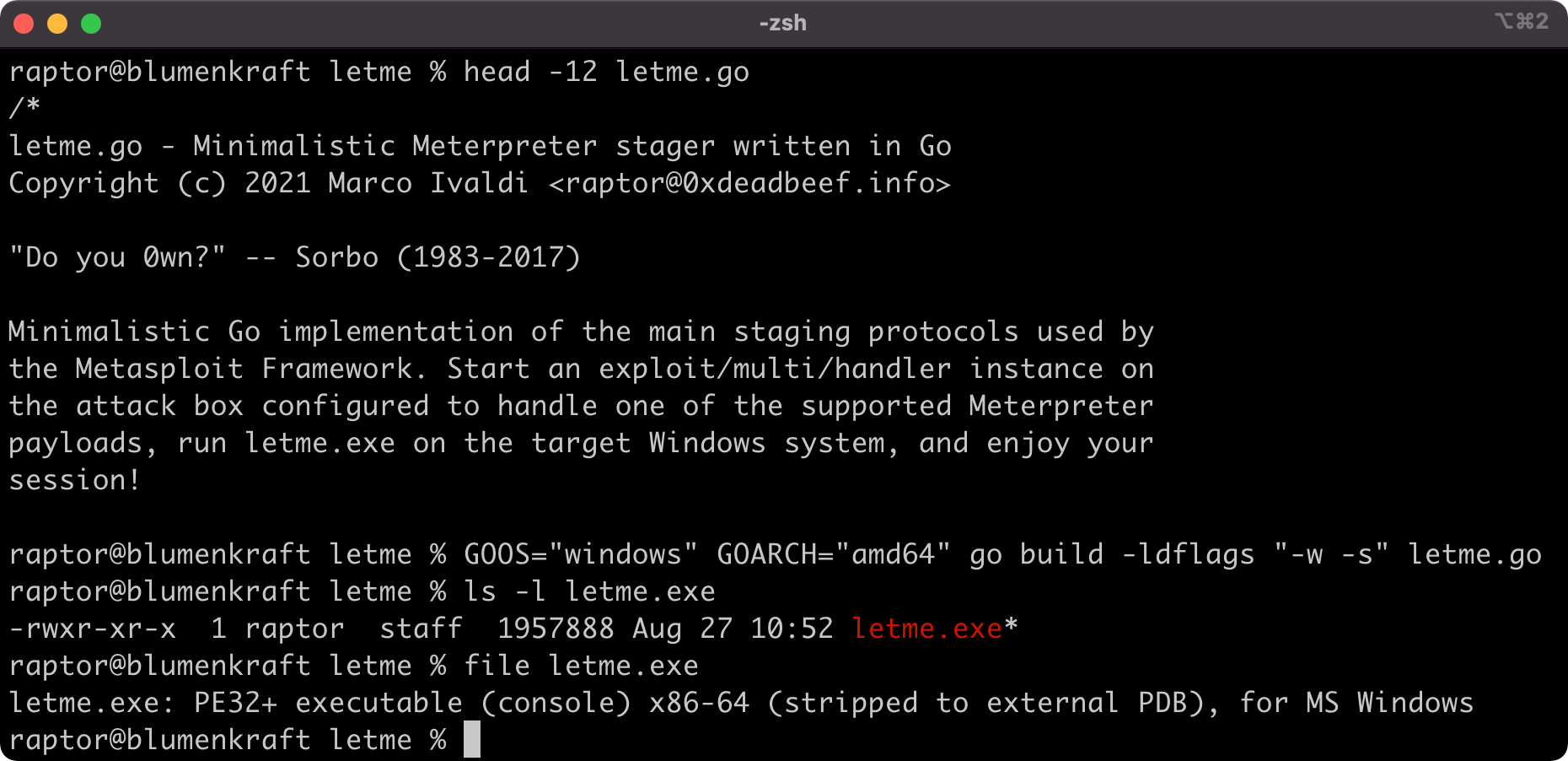 letme.go – A minimalistic Meterpreter stager written in Go