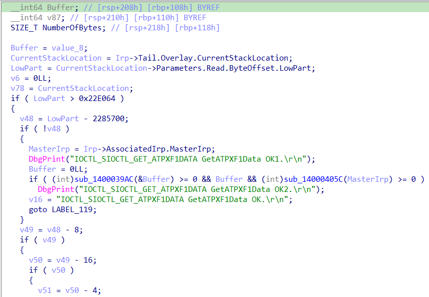 We can see it references multiple fields inside the IRP. If we give a look at the definition of the IRP and _IO_STACK_LOCATION we can see the fields CurrentStackLocation->Parameters and Irp->AssociatedIrp are actually unions.