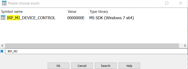 Ctrl-Fand type IRP_MJ in the search bar. - Select the appropriate entry and press ok.