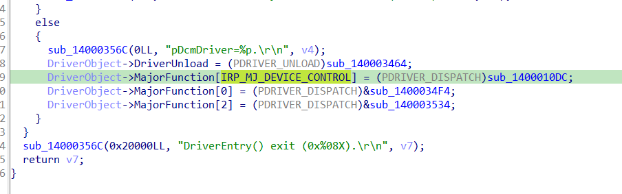 In this case we will focus only on the IRP_MJ_DEVICE_CONTROL major function code but typically he IRP_MJ_READ IRP_MJ_WRITE and IRP_MJ_CREATE major function codes are also of interest.